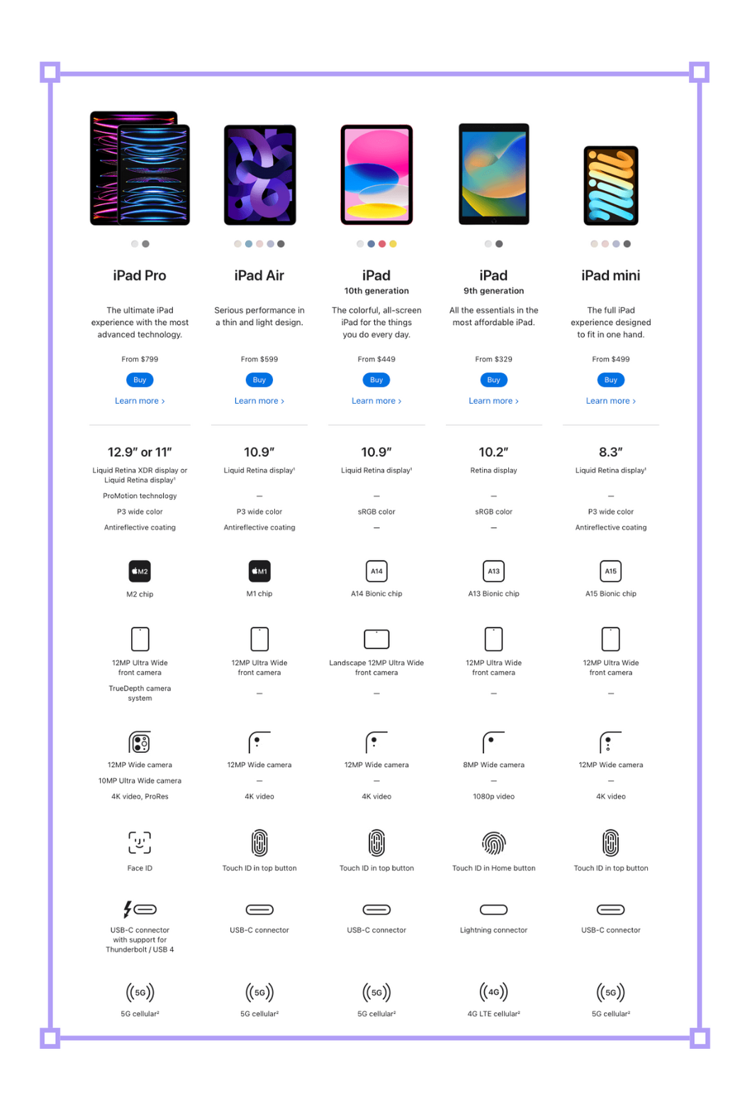 $449 (iPad 10th Gen): The newer iPad with a better display, chip, camera, and USB-C.